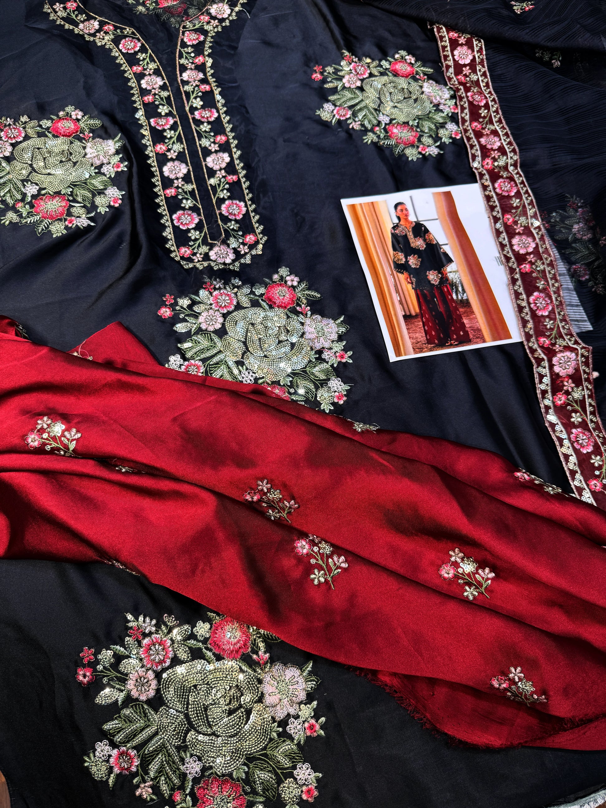 - Organza Embroided Neckline.