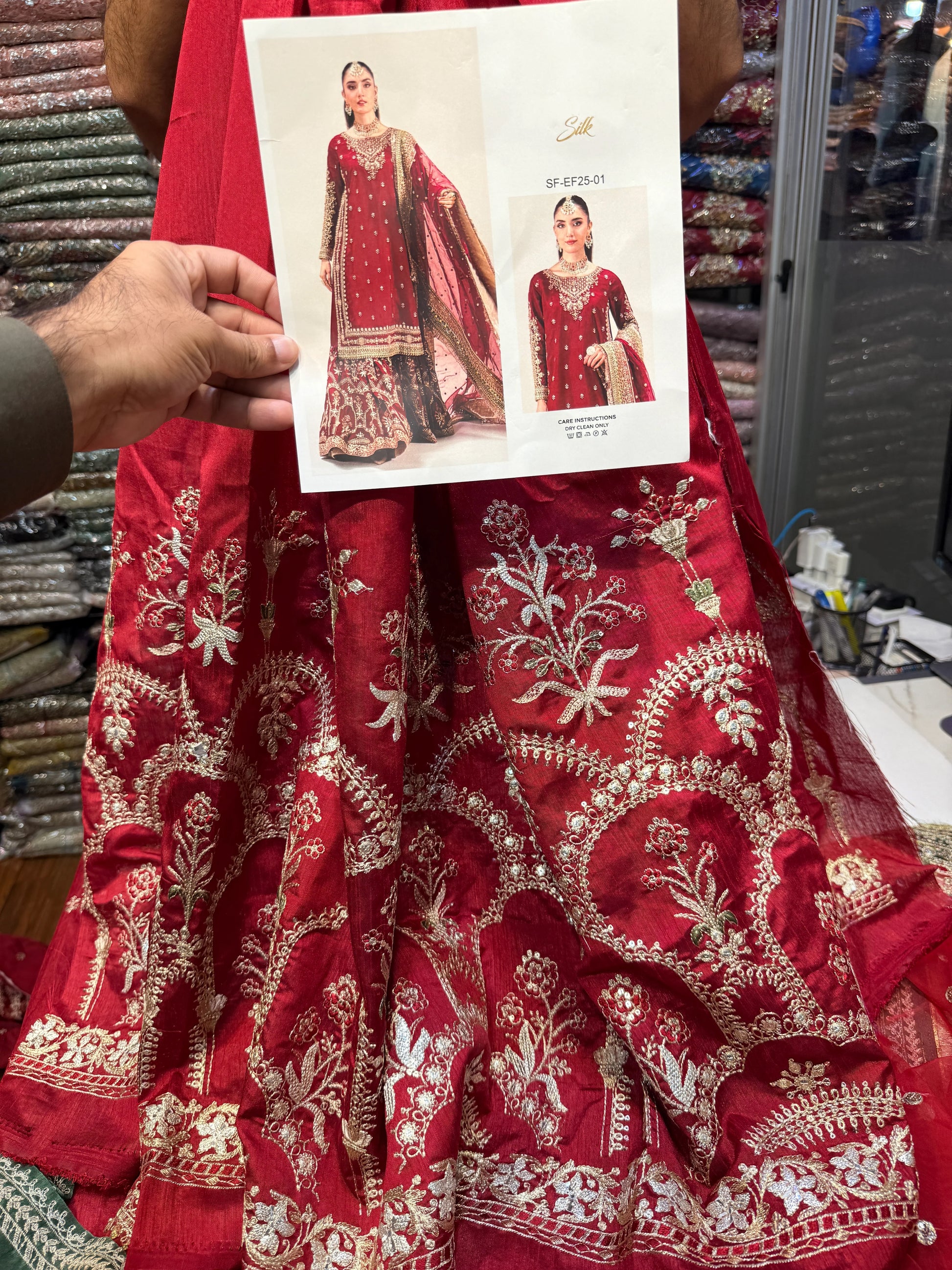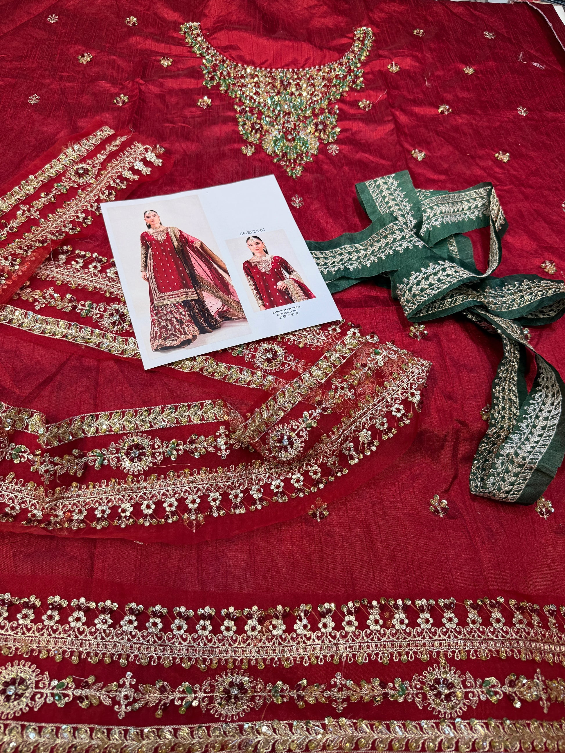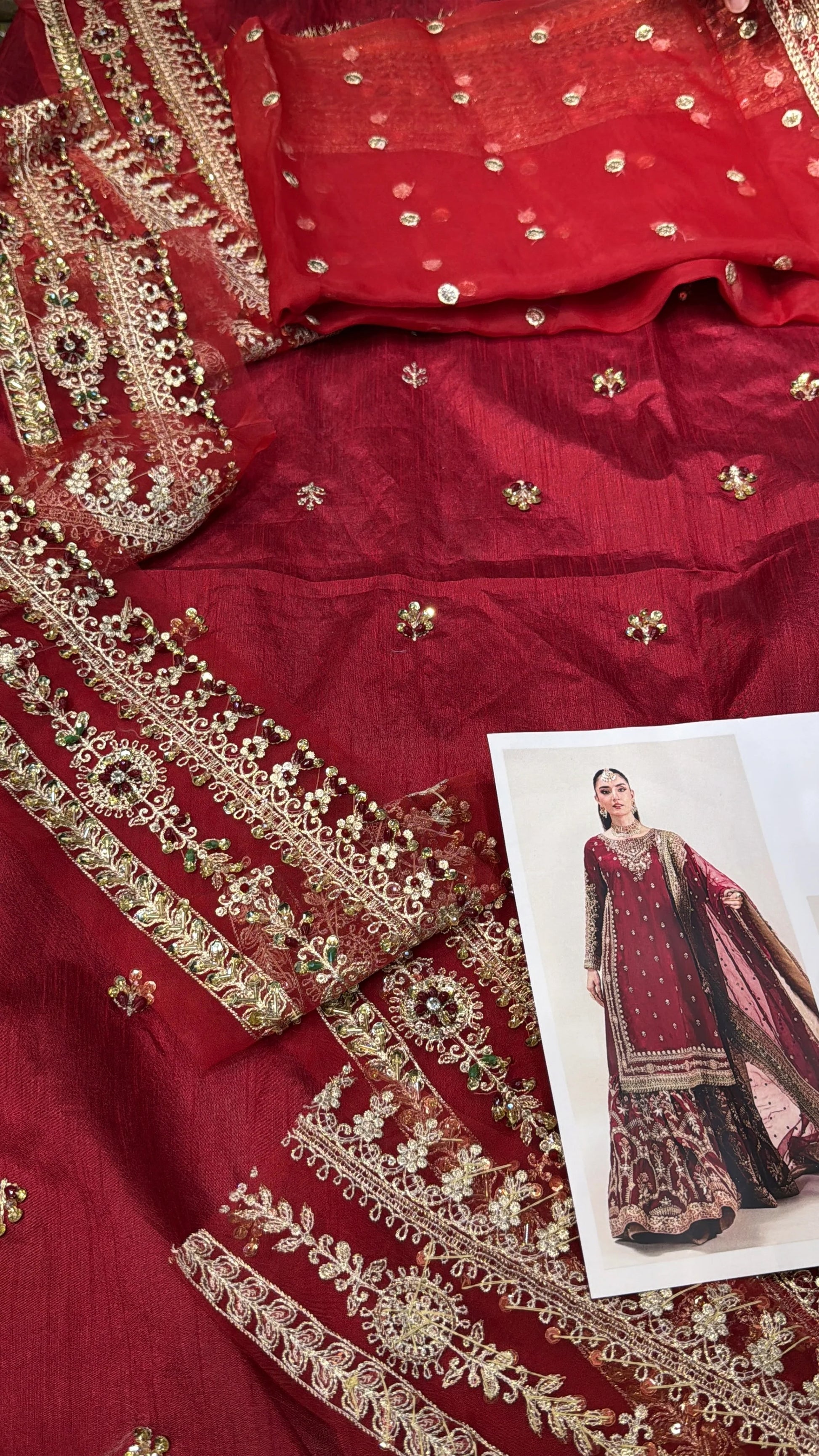RAW SILK FULL EMBROIDED AND HAND EMBELLISHED SLEEVES