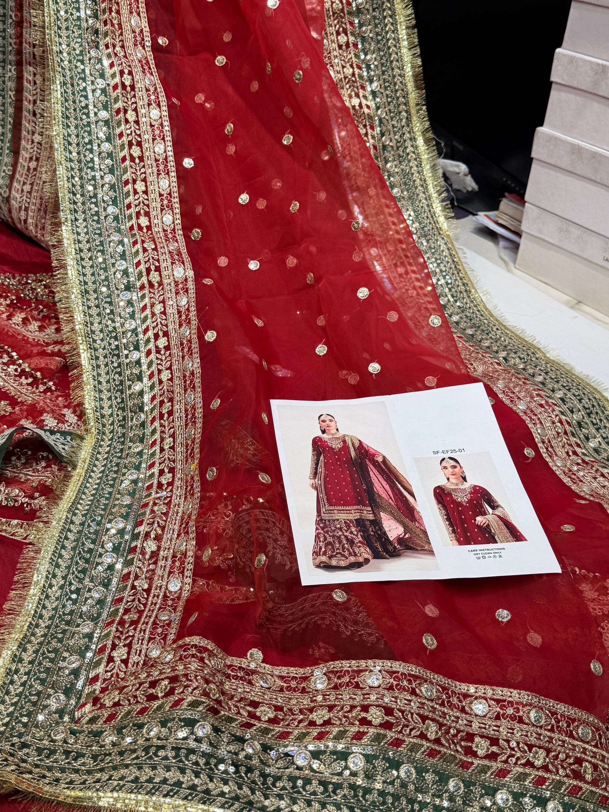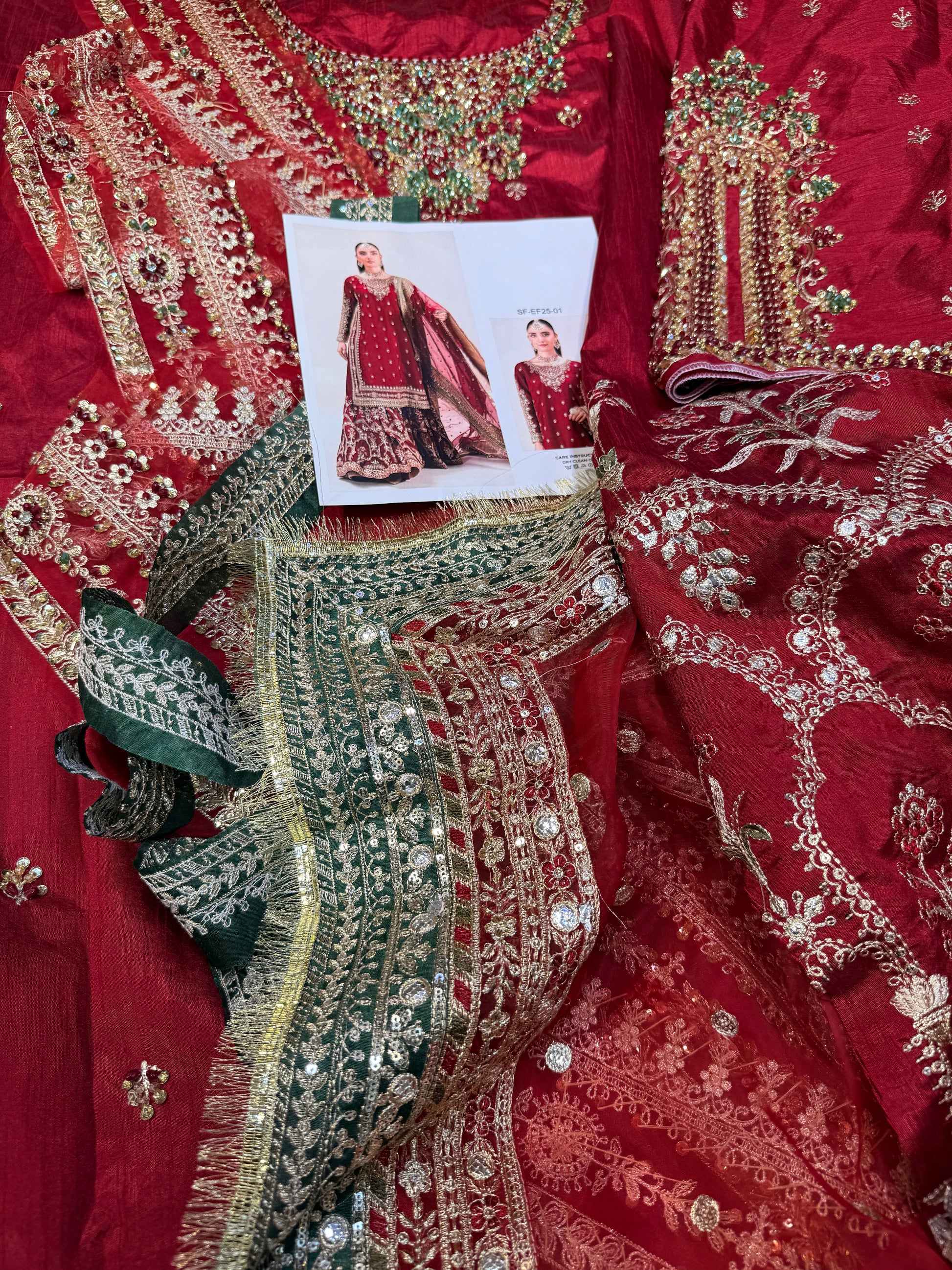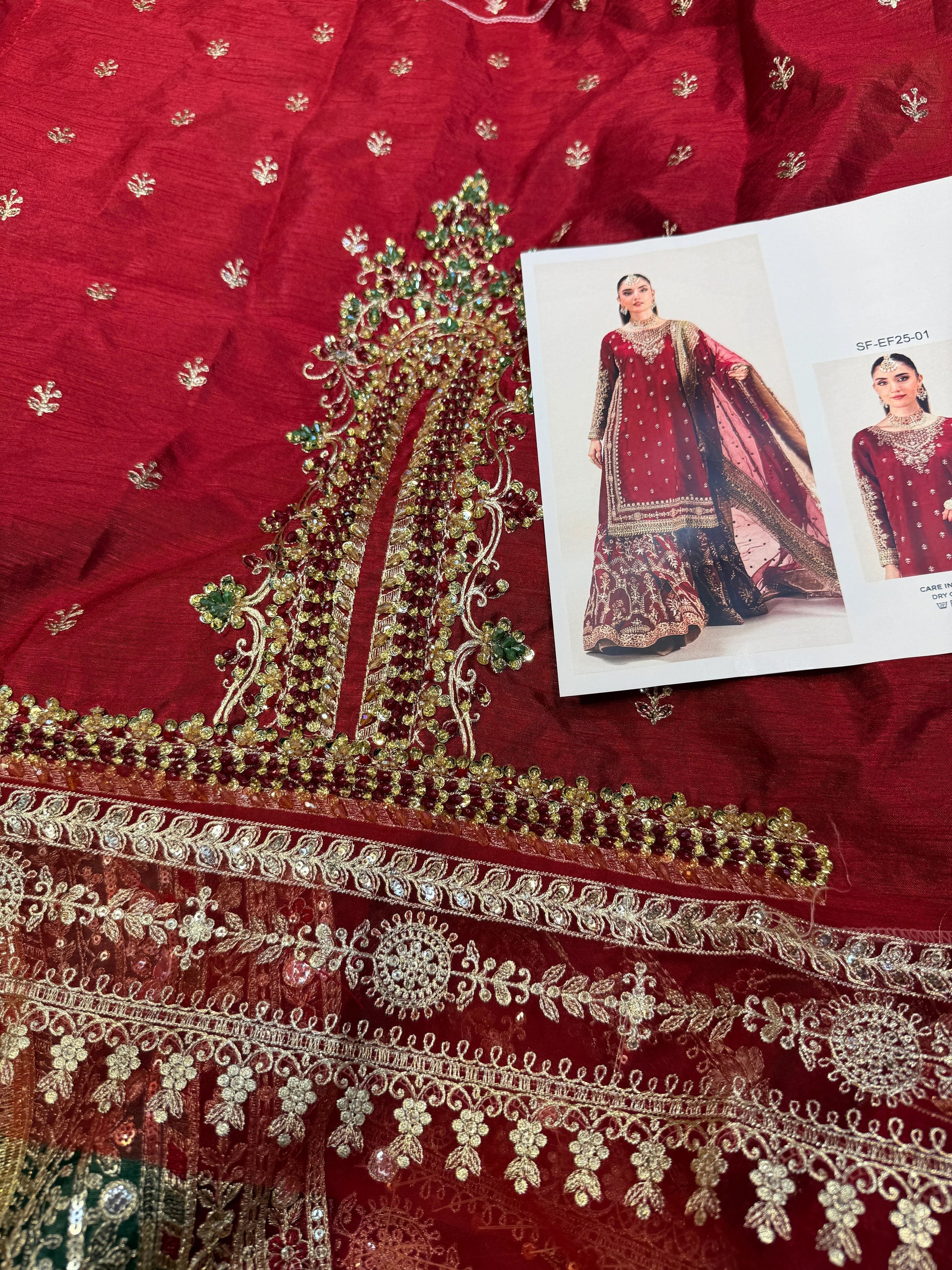 RAW SILK FULL EMBROIDED AND HAND EMBELLISHED SLEEVES