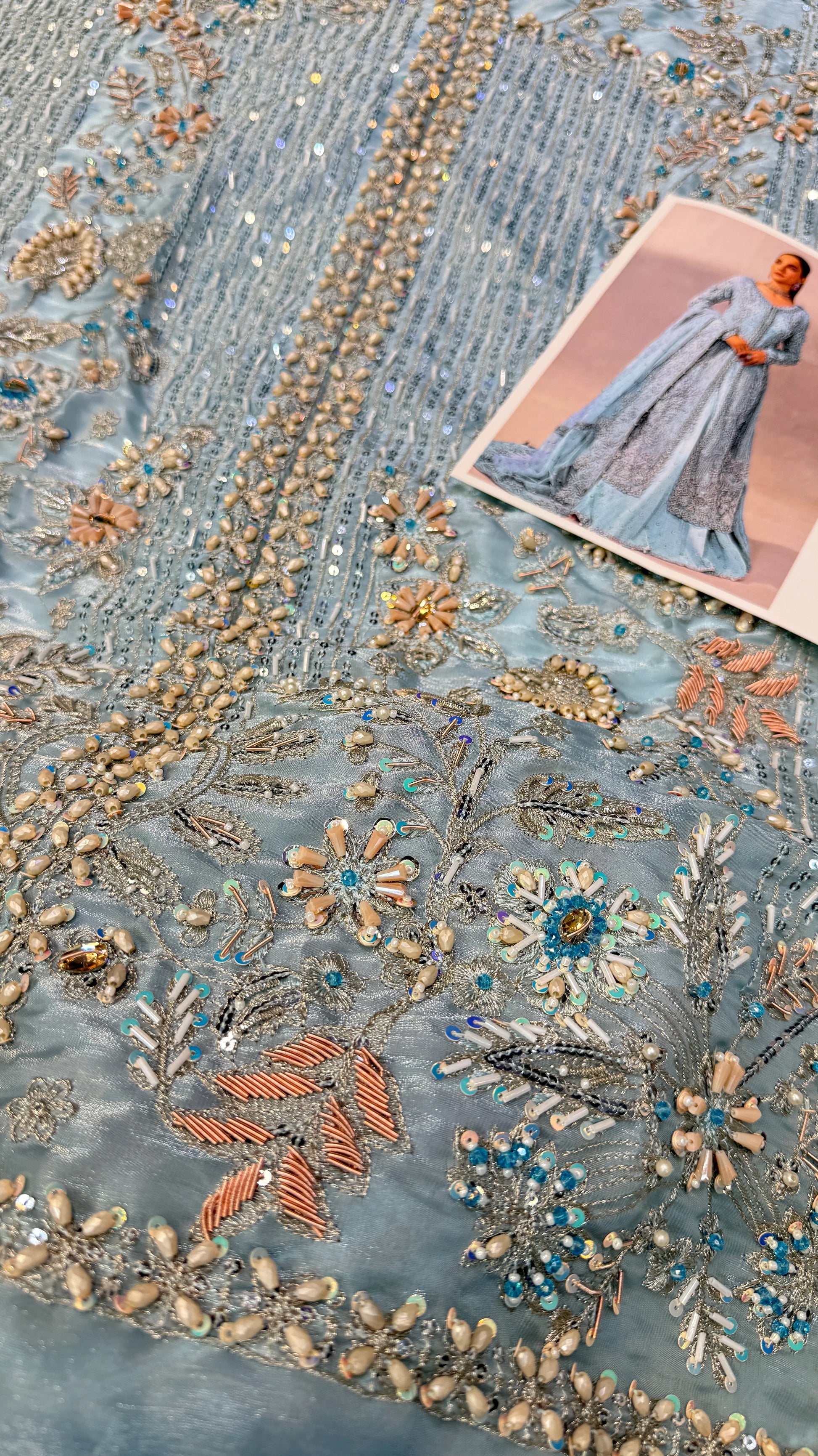 FRONT WITH HAND MADE NECK HAND MADE PEARLS AND HAND EMBELLISHMENT
