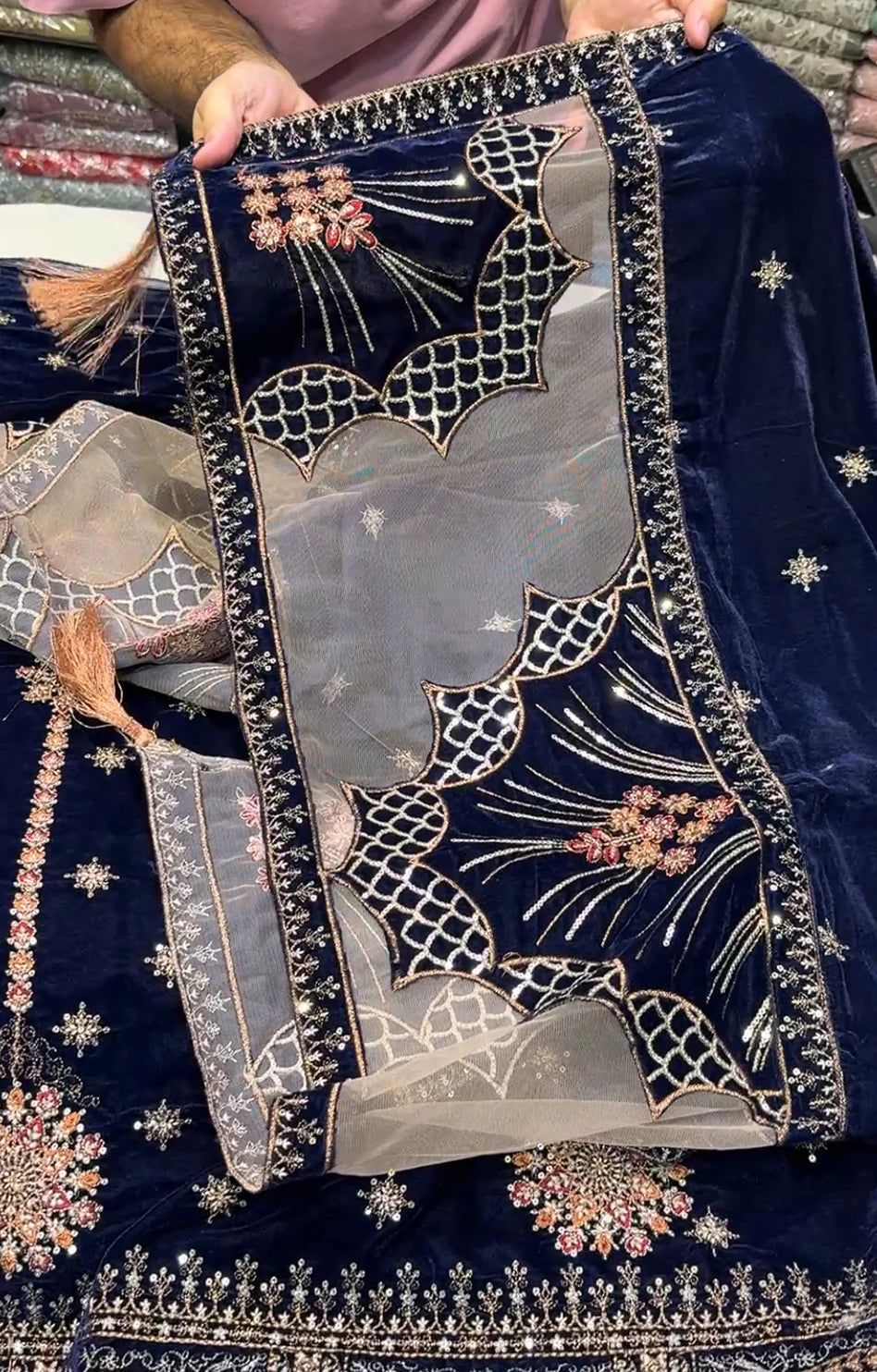 Embroided Velvet Front