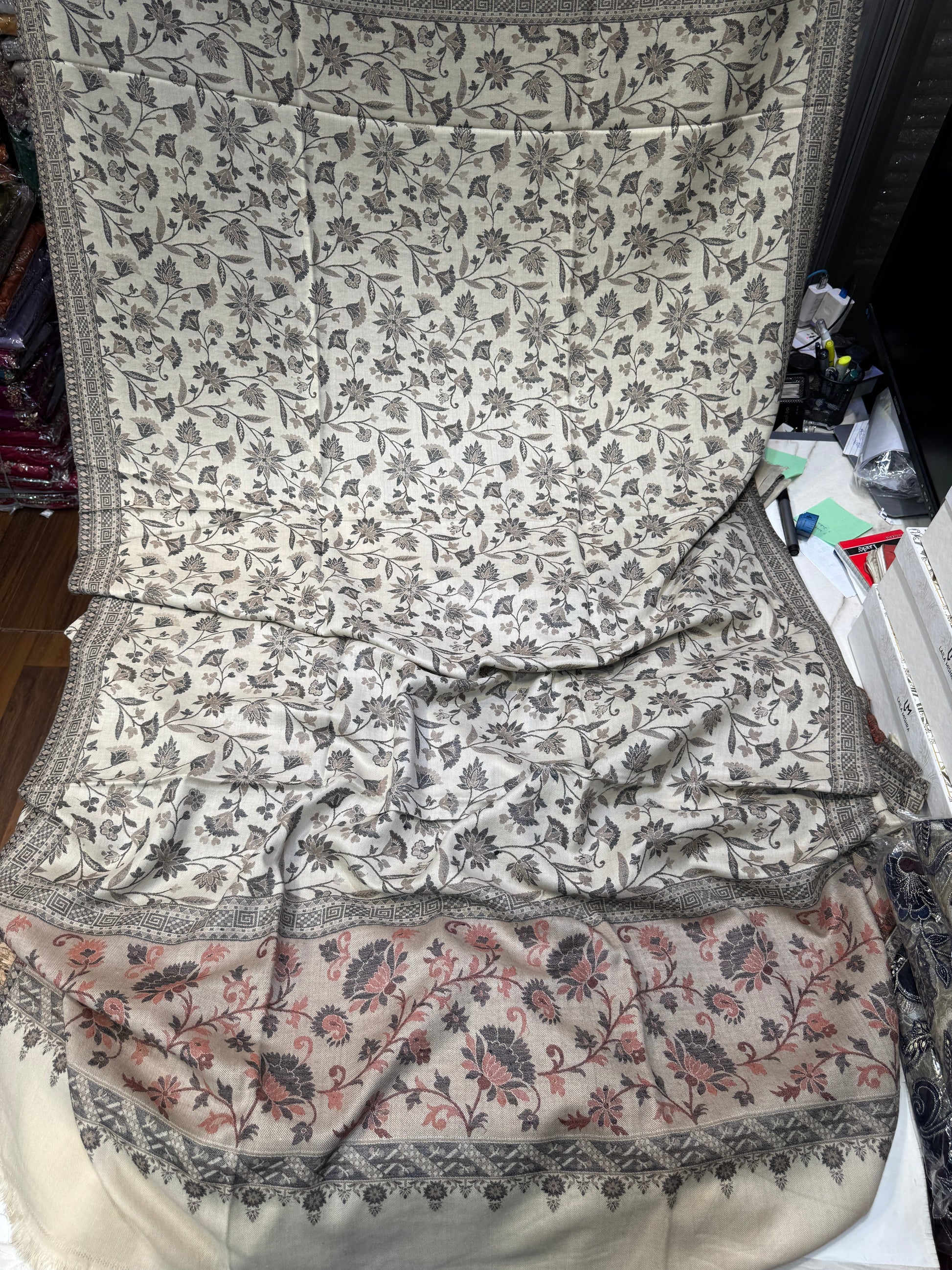 - PEACH WOOL INPRINT SHAWL