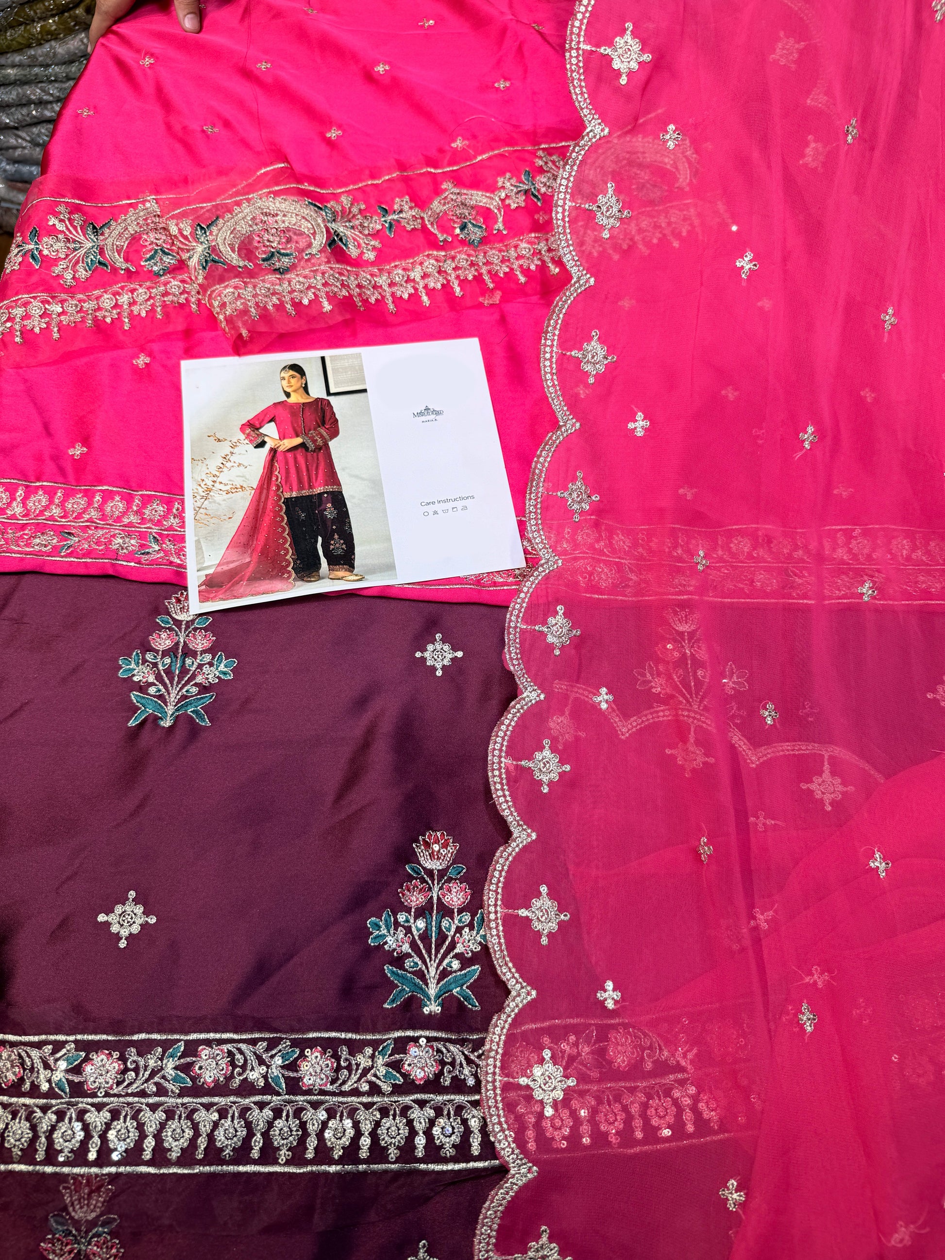 - Organza Embroided Neckline.